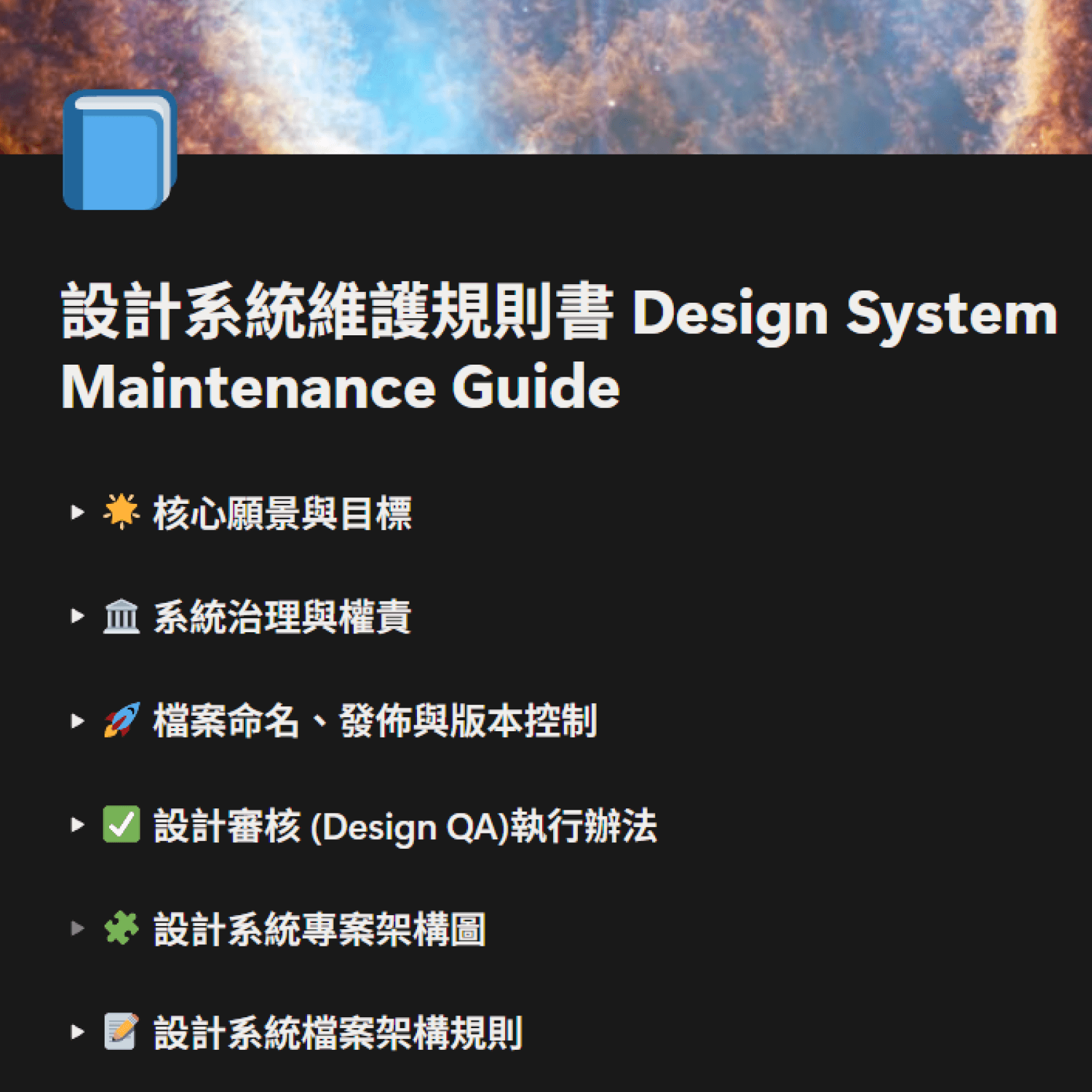 我建立了 Design System 維護規則書,內容包含: